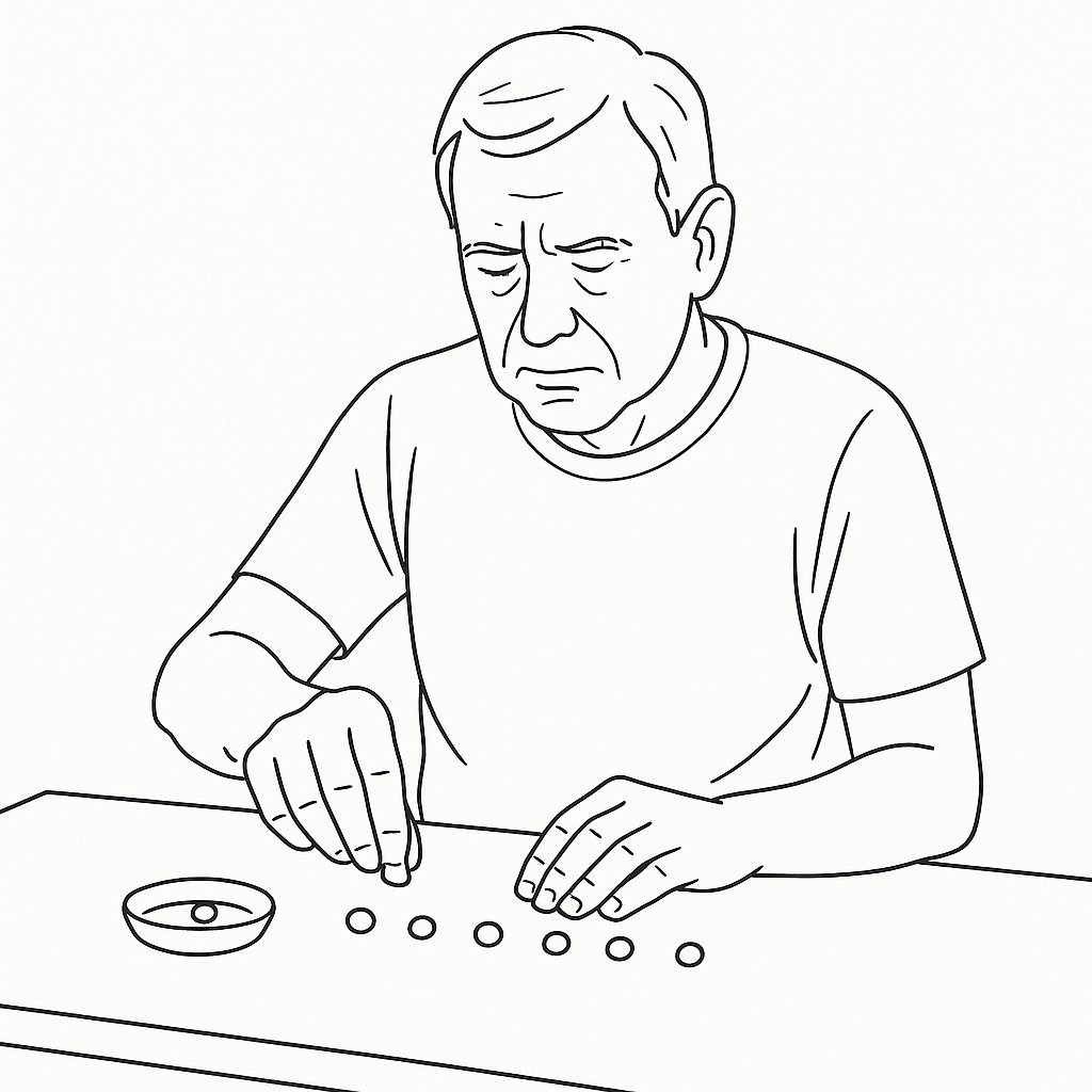 Now, 15 months on, it still isn’t perfect — but I’ll be honest, my attention has mostly been on getting my legs working properly again. Even so, I’ve clocked up hours of practice with little exercises: lifting and stacking those rigid cuboid ketchup portions you get with hospital meals, or clipping tiny Christmas-card pegs around the rim of a paper cup, all with the weaker arm. I also spent time strengthening the muscles themselves by squeezing and reshaping therapy putty. Simple, repetitive, but quietly effective.